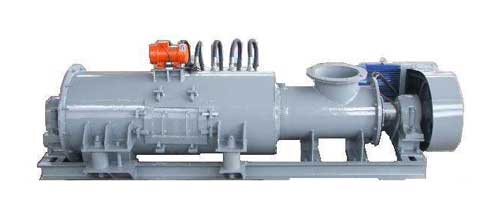 在螺旋葉輪體的勻速運轉時,調幅振動裝置間歇性的工作,使拌料筒周壁等幅振蕩,將加濕后的粘性粉塵體與金屬筒壁脫離,完全送如卸料口排出。