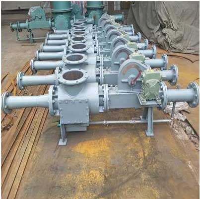 如果裝在電除塵落灰下部,可以一斗一管,赤可兩斗兩斜管;特殊情況赤可四斗四斜管插入一臺料封泵中,但所有落灰斜管的斜度均應≥45°。