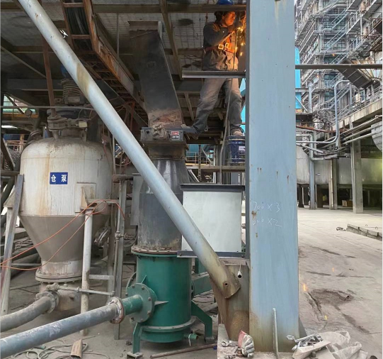 料封泵一般安裝在料倉(cāng)底部,新投產(chǎn)的料封泵應(yīng)先把活動(dòng)風(fēng)管外腔加入足量的潤(rùn)滑油,再通過(guò)執(zhí)行機(jī)構(gòu)對(duì)活動(dòng)風(fēng)管進(jìn)行調(diào)整,來(lái)改變噴嘴與噴頭之間的距離,通過(guò)調(diào)試來(lái)選擇一個(gè)比較理想的位置同時(shí)記下標(biāo)尺刻度,開(kāi)始正常工作。停機(jī)時(shí)先使噴嘴與噴頭閉合并使管道內(nèi)物料全部輸送完才能停風(fēng)。料封泵只有在料面具有一定高度時(shí)才能正常工作,如果料位低于一定值時(shí)輸送量就會(huì)減少,如果突然停氣等原因使管道堵塞時(shí),應(yīng)使噴嘴與噴頭閉合吹起直至管道暢通。